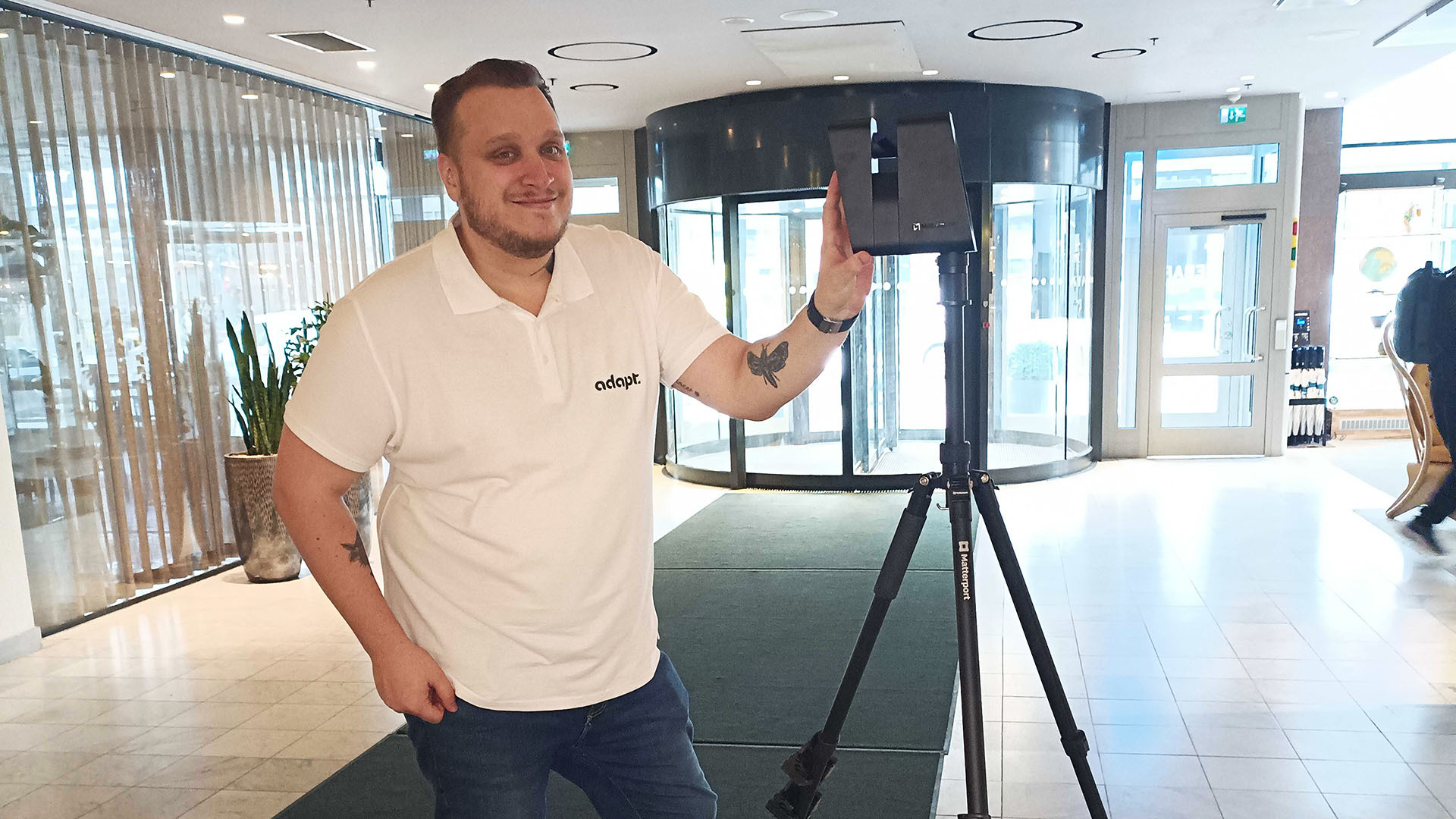 Så här ser det ut när vår 3D designer Isak Felldin 3D-skannar en anläggning. Idag har han varit på Hotel C i Stockholm där publika ytor och konferensrum dokumenterats så att man enkelt skall kunna erbjuda digitala site visits, planritningar och 3D-visualiseringar i olika projekt.