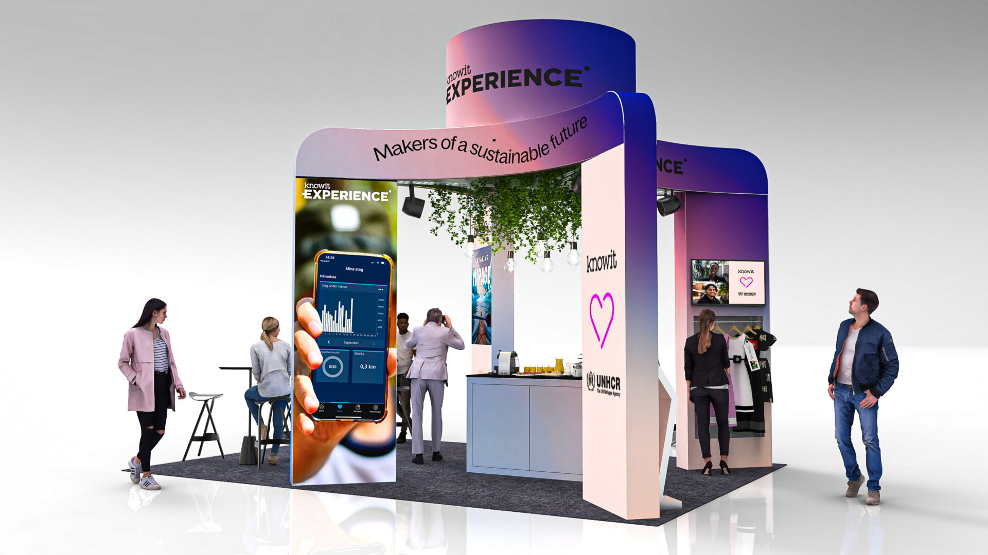 Visualiseringarna används både som beslutsunderlag och som ett kreativt arbetsverktyg i dialogen mellan kund, designer och produktion. Det sparar tid, minskar osäkerheten och gör det lättare att landa i lösningar som inte bara ser bra ut, utan som också fungerar i praktiken på mässgolvet.