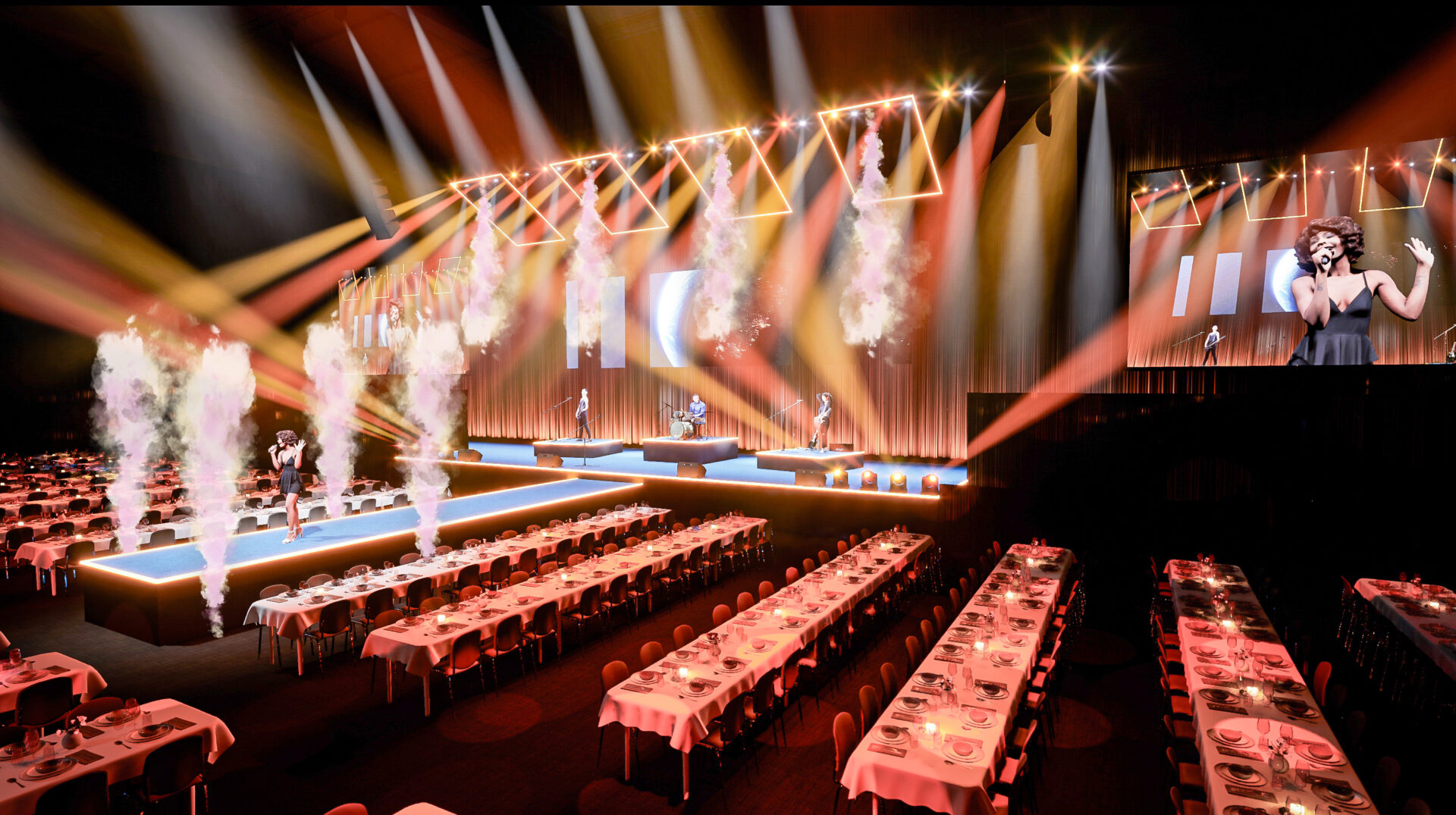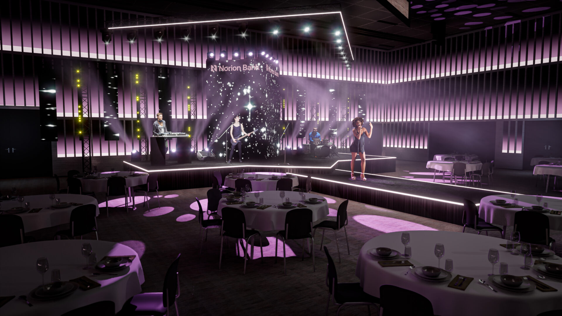 Vi skapar eventvisualiseringar där idéer snabbt kan testas, justeras och utvecklas i realtid. Genom att arbeta i spelmotorn Unreal kan vi dynamiskt förändra layout, ljus, scenografi och teknik och du kan i förväg se hur ditt event kommer att se ut med dina gästers ögon.